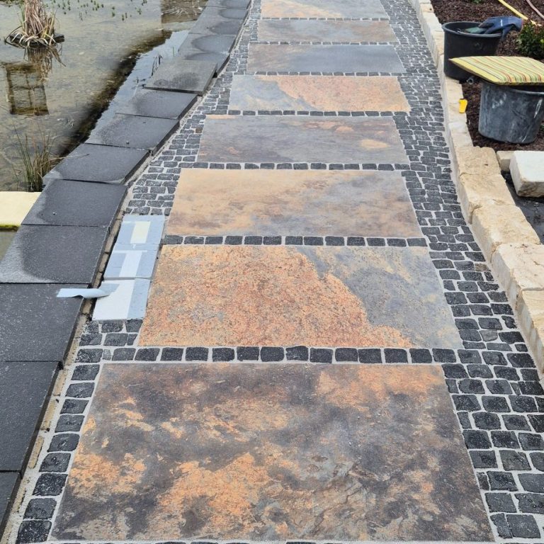 Erkunden Sie unsere vielfältigen Möglichkeiten im Bereich der Pflasterung. Mit hochwertigen Natursteinen und Keramikplatten gestalten wir einzigartige Wasser- und Gartenlandschaften für jedes Zuhause.