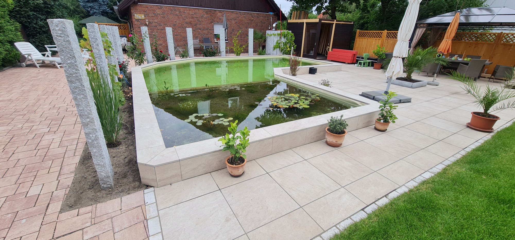 UD Schwimmteichbau Berlin bietet eine umfassende Auswahl an Naturstein und Platten, ideal für Ihre Gartenprojekte. Ob Granit, Basalt oder Marmor – unsere Produkte verleihen Ihrem Außenbereich eine edle Note und Langlebigkeit. Mit unseren sorgfältig ausgewählten Materialien schaffen Sie nicht nur einen ästhetischen Gartenraum, sondern auch eine nachhaltige Lösung, die den unterschiedlichsten Witterungsbedingungen standhält. Vertrauen Sie auf unsere Expertise und lassen Sie sich von unseren individuellen Gestaltungsmöglichkeiten inspirieren, um Ihre Gartenträume Wirklichkeit werden zu lassen.