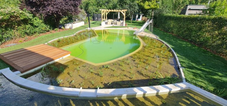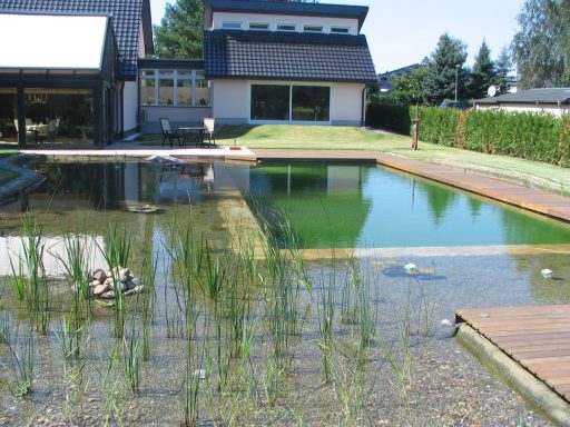 Ein Schwimmteich verbindet Natur mit einem Luxus-Badeerlebnis. Er bietet eine umweltfreundliche Alternative zu herkömmlichen Pools und fügt sich perfekt in die Gartenlandschaft ein, während die Pflanzenzonen zur Filtration und zur biologischen Reinigung des Wassers beitragen. Eine individuelle Gestaltung und hochwertige Materialien garantieren, dass Ihr Schwimmteich nicht nur funktional, sondern auch ästhetisch ansprechend ist.